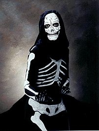 Elvira, a group of biker chicks, and an evil queen were among the 80 costumed staff members who paraded into the Photo Services studio to have their pictures taken for the 1996 Almost Annual Halloween Photo Contest. After much deliberation, Photo Services chose this year's winners, each of whom will receive a gift certificate to the Bay Tree Bookstore and film and photo processing. In the individuals category, the winners are: Lynda Tanaka as Kali in the 21st century (first prize); Chris Kamalani as Frankenstein (second prize); and Serena Dionysus as a skeleton (third prize). The prize for best group went to cosmic clowns Karen Fry and Sherry De Stefano.